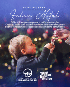 O governo municipal de Ipiranga do Sul deseja a todas as famílias um Natal de paz, união e esperança.Que este